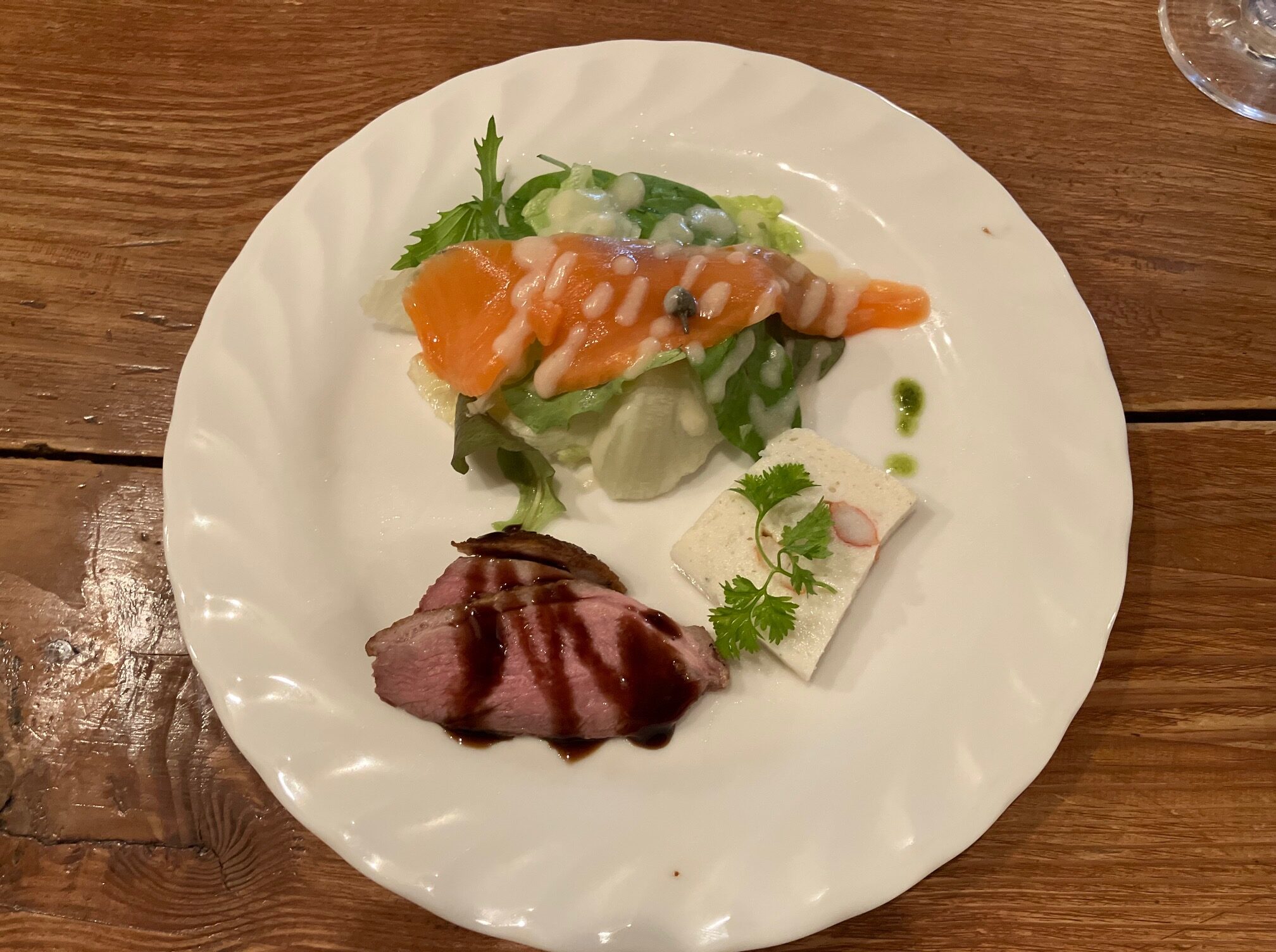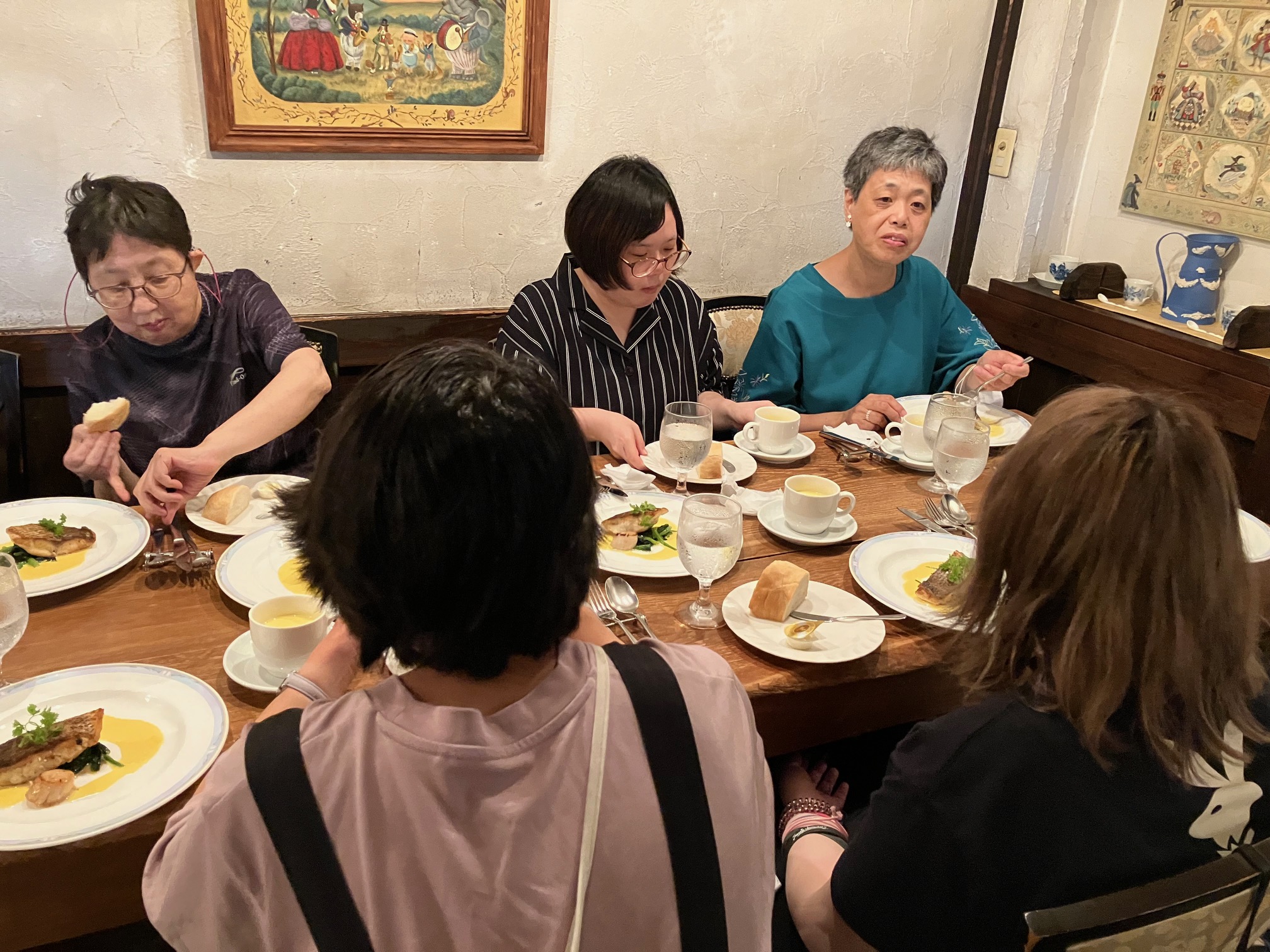 前菜、スープ、パンなど順番に出てくるので、メイン料理が出るまでにお腹がいっぱいにならないか、スタッフもひやひやしながら(笑)見守っていました。