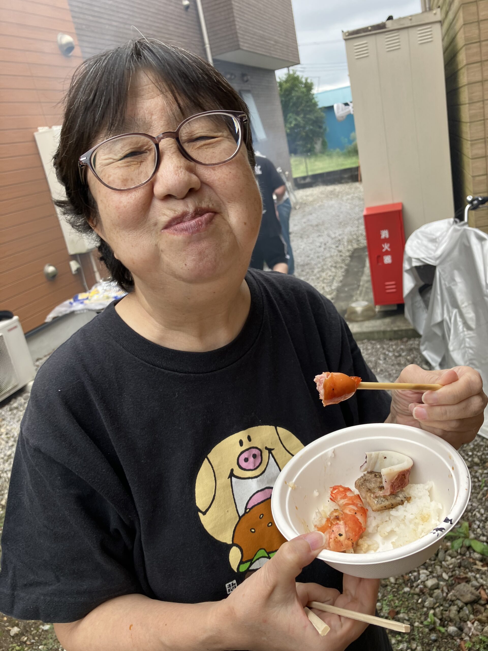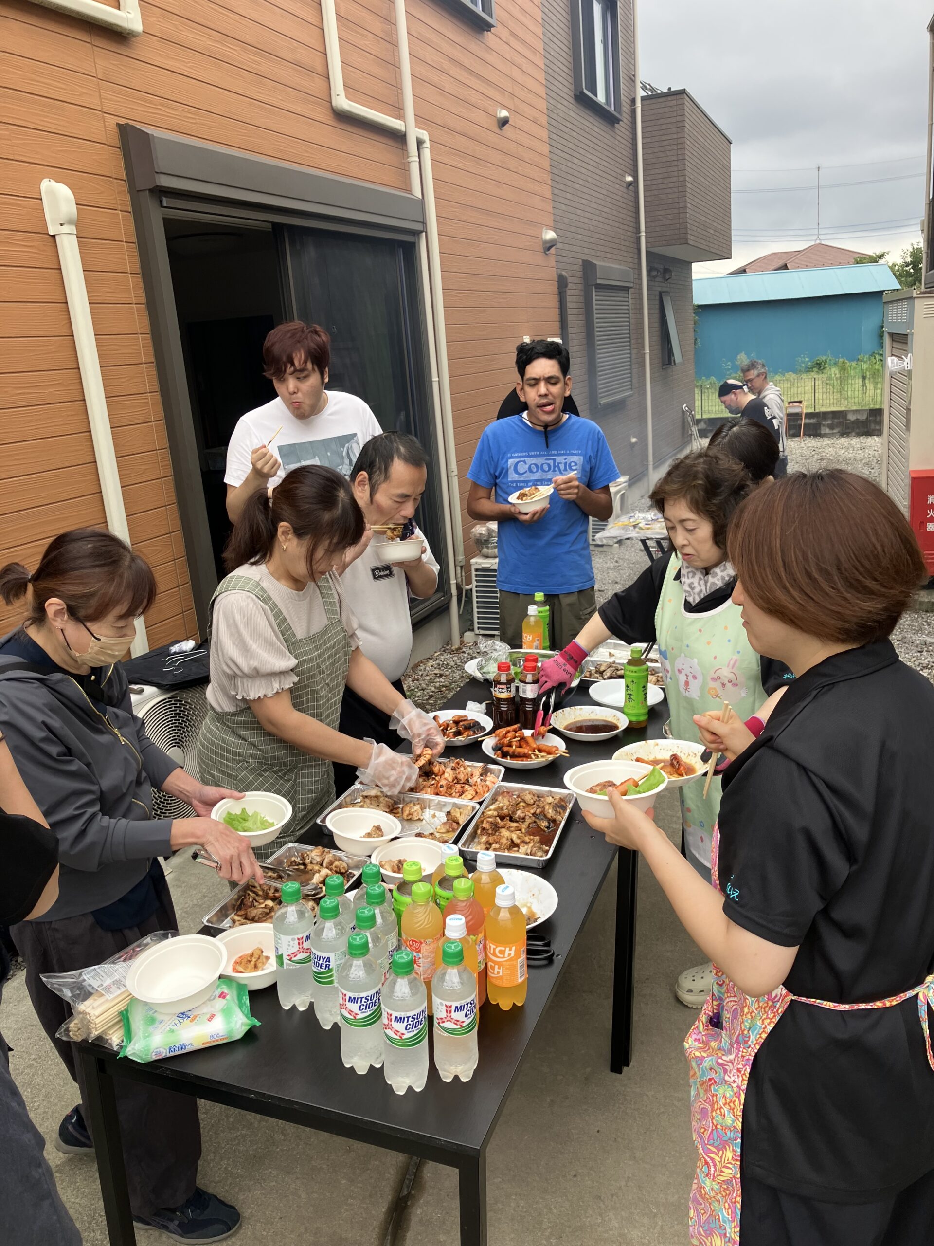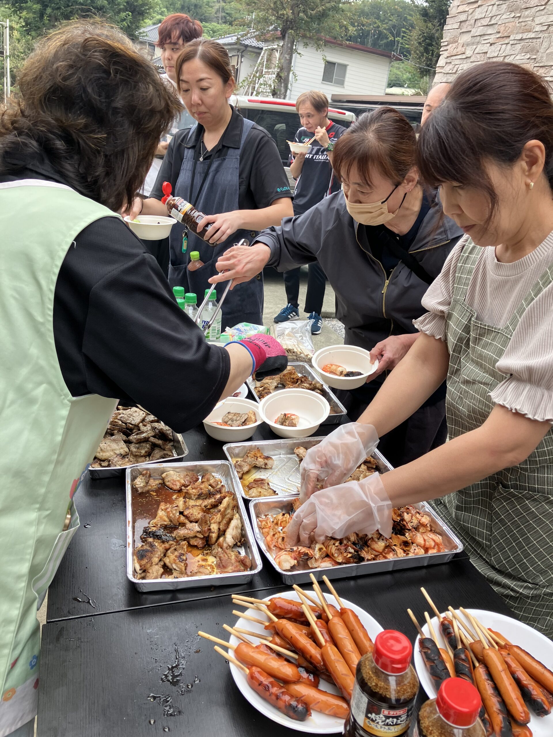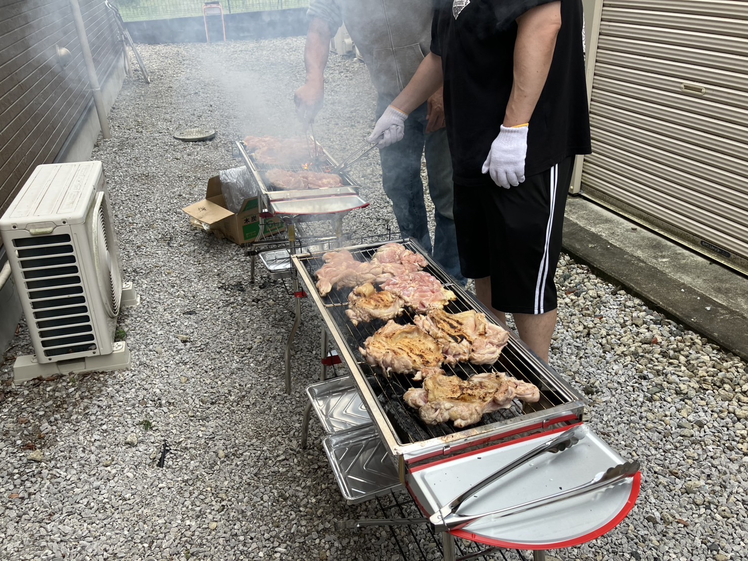 そんな中、男性従業員は前日から買出し、当日は朝早くから準備して、熱い火の前でひたすら焼いてくれました。