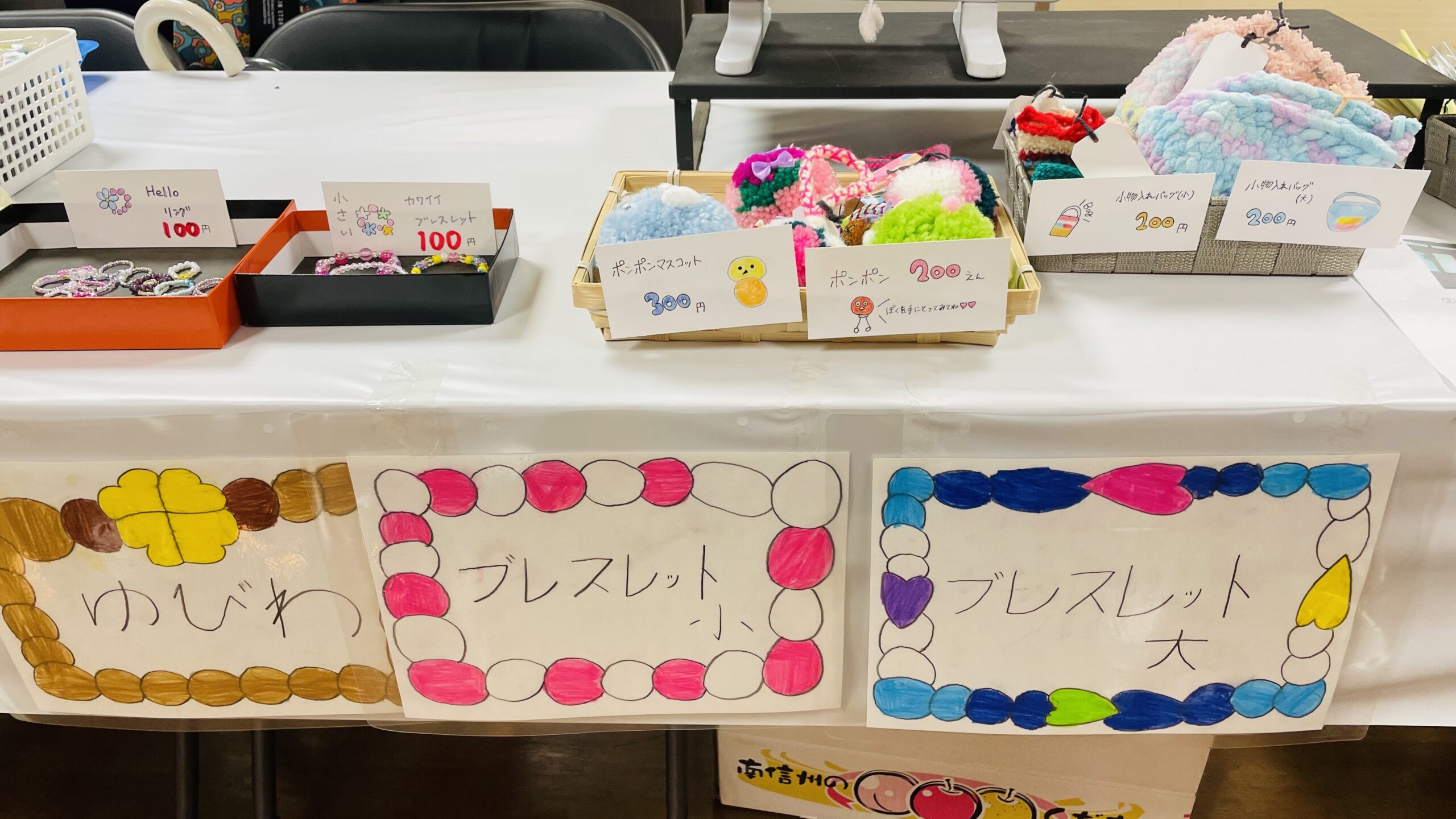 天気はあいにくの雨模様でしたが、販売はあたたかい室内で行うことができました。焼きそば、おしるこ、ベビーカステラ、バザー、雑貨…他にもたくさんのお店や催し物があり、食べたり鑑賞したり買いものをしたり、普段とは違った1日を過ごしました。
